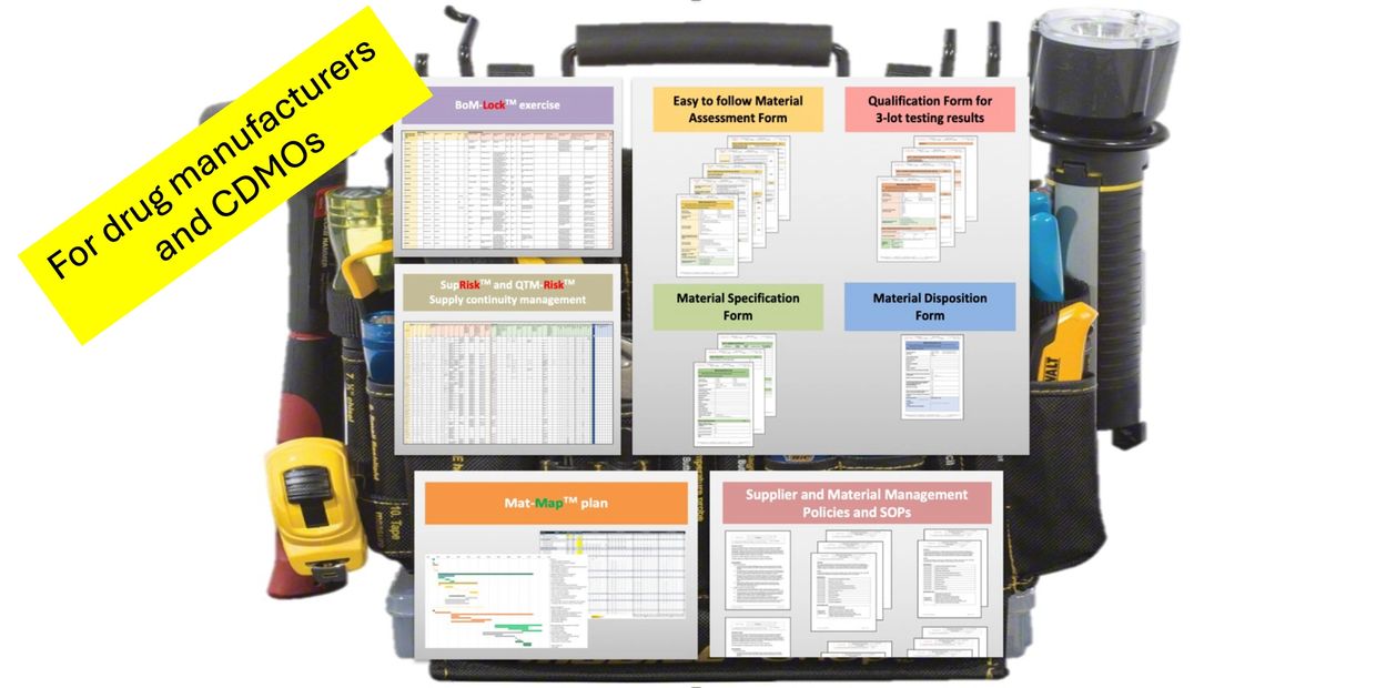 The raw material assessment form of the MatRisk™ toolbox is a "living" form that documents the phase-appropriate risk assessment for each material used in GMP production, considering among others: